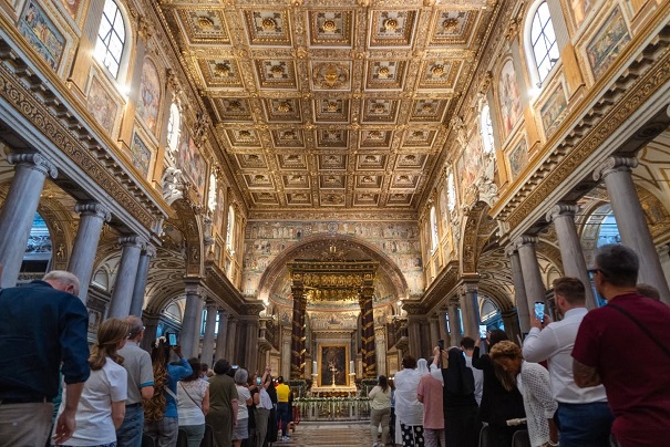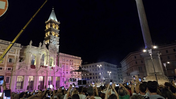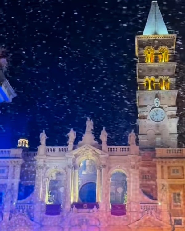 Havazás augusztusban Rómában, a "hó csodája" a Santa Maria Maggiore bazilikában Ferenc pápával 2024