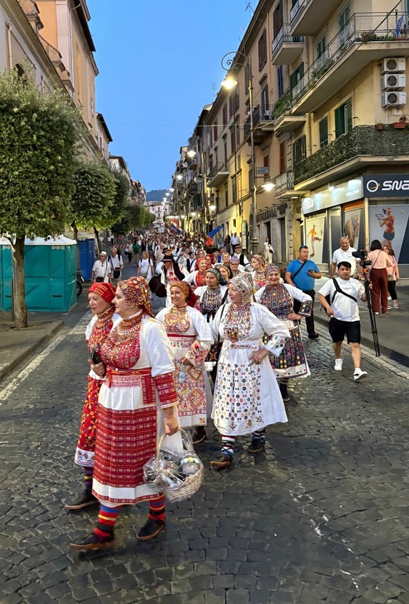 szépségét. Több nemzet néptáncosainak a felvonulása a Colosseumtól indult, s itt