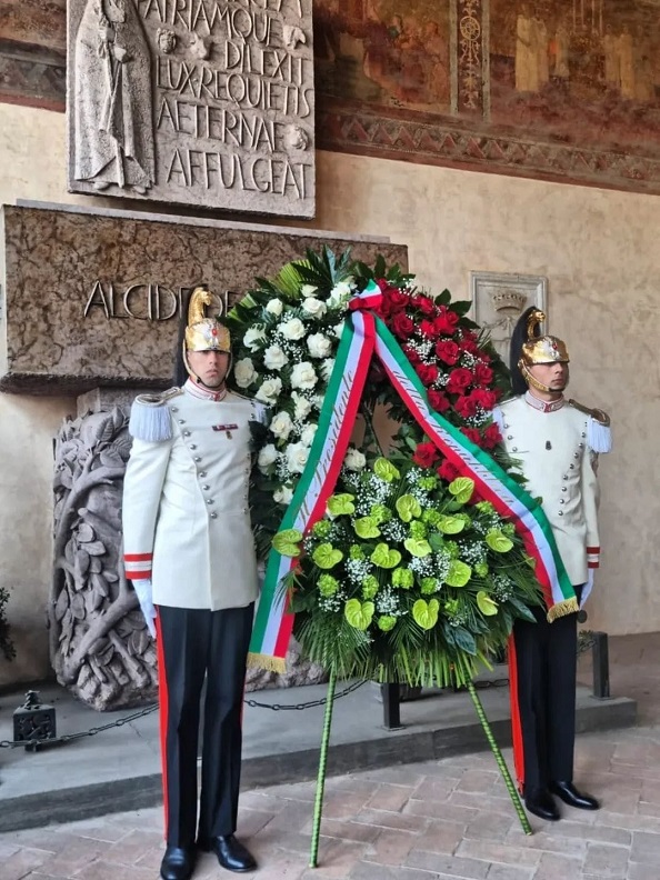 A falakon kívüli Szent Lőrinc/San Lorenzo bazilikában, ahol eltemették Alice De Gasperi politikust, halála 71. évfordulóján Baldo Reina bíboros, Leó pápa római helynöke augusztus 19-én szentmisét mutatott be, azt követően, hogy hivatalosan a bazilika nyitott előcsarnokában megkoszorúzták a sírt.