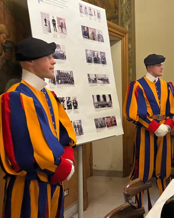 Meglepetés lesz október 3-án az új hivatalos gála egyenruhák használata az eskütétel előtti nap gálavacsoráján, melyet a Svájci Gárda október 2-án, csütörtökön mutatott be a vatikáni laktanya Cantina degli ospiti (Vendégpince) termében. Ezek a ruhák azonban, a tévedések elkerülése végett nem a híres kék, piros és sárga egyenruhák, amit Jules Repond parancsnok tervezett és vezetett be 1915-ben.