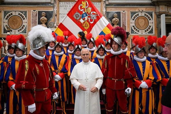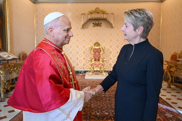 Leó pápa a hagyományoknak megfelelően október 3-án pénteken reggel az Apostoli Palota dolgozószobájában magánkihallgatáson fogadta Kerin Keller-Sutter asszonyt, a Helvét Köztársaság elnökét, aki kíséretével együtt érkezett az újonc svájci gárdisták eskütételére. A vatikáni ünnep mindig nagy esemény Svájc életében, hiszen a hegyi kantonok országa éppen a semlegesség jegyében csak visszafogottan vesz részt a világ politikai eseményeiben.