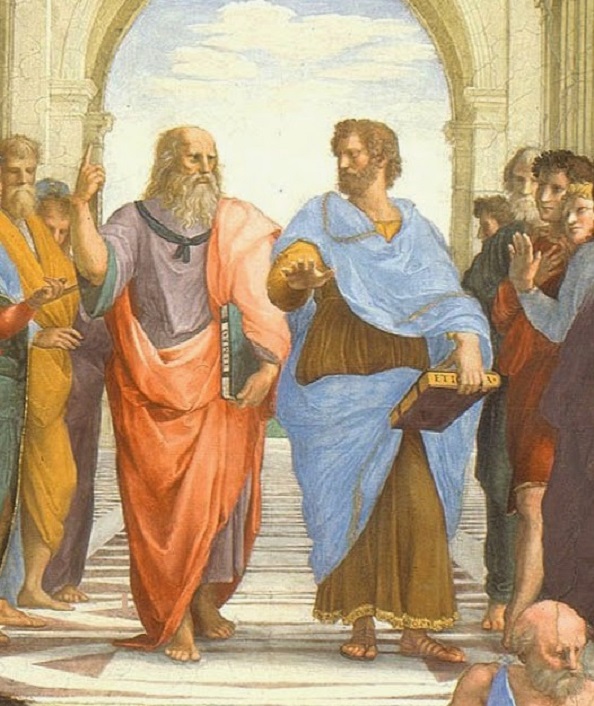 A világi tudományokat ábrázoló bölcselet kompozíciója közepén az idealista Platón és a realista Arisztotelész alakja között fut össze a perspektivikus enyészpont, amit sem Platón ég felé emelt keze, sem Arisztotelész földre mutató ujjai nem tudnak megragadni.