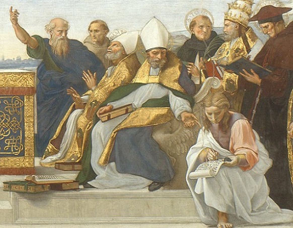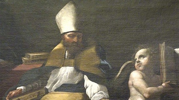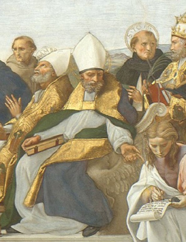 A festmények és fából készült tárgyak restaurátorműhelye által felújított kép Szent Ágoston alakjának másolata, ahogyan Raffaello Sanzio Az Oltáriszentség disputája című, 1509-ben elkészült freskóján látható a Vatikáni Múzeum Segnatura termében. A festmény angyalka alakja is az Oltáriszentség disputája c. Raffaello freskóból másolat.