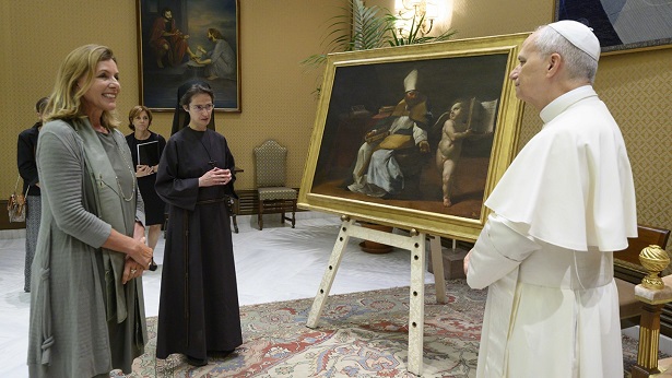 A Vatikáni Múzeum küldöttsége egy restaurált Szent Ágoston-festményt adott át XIV. Leó pápának, egy 18. századi névtelen római művész alkotását, amelyet a Festmények és Faanyagok Restaurálásának Laboratóriuma állított helyre. A jelenlévők között volt a múzeum igazgatója, Barbara Jatta, és a Kormányzóság elnöke, Raffaella Petrini nővér.