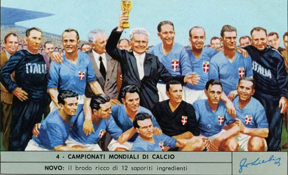 Egyébként egy régi képeslapon, amelyen az 1934-es világbajnokságot megnyerő olasz labdarúgó-válogatott látható: a mezek még mindig nagyon hasonlítanak az eredetileg 1911-ben használtakhoz.