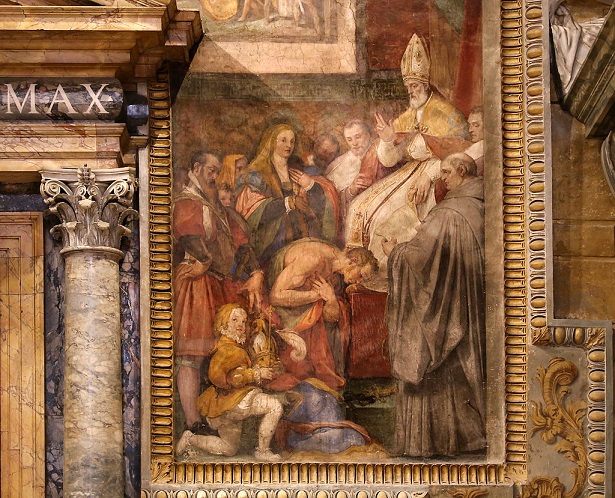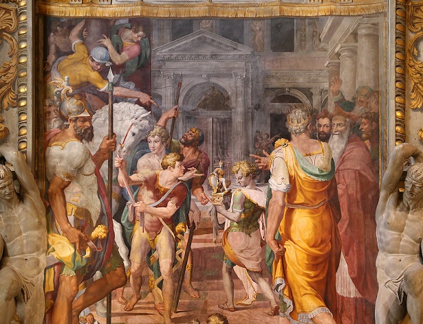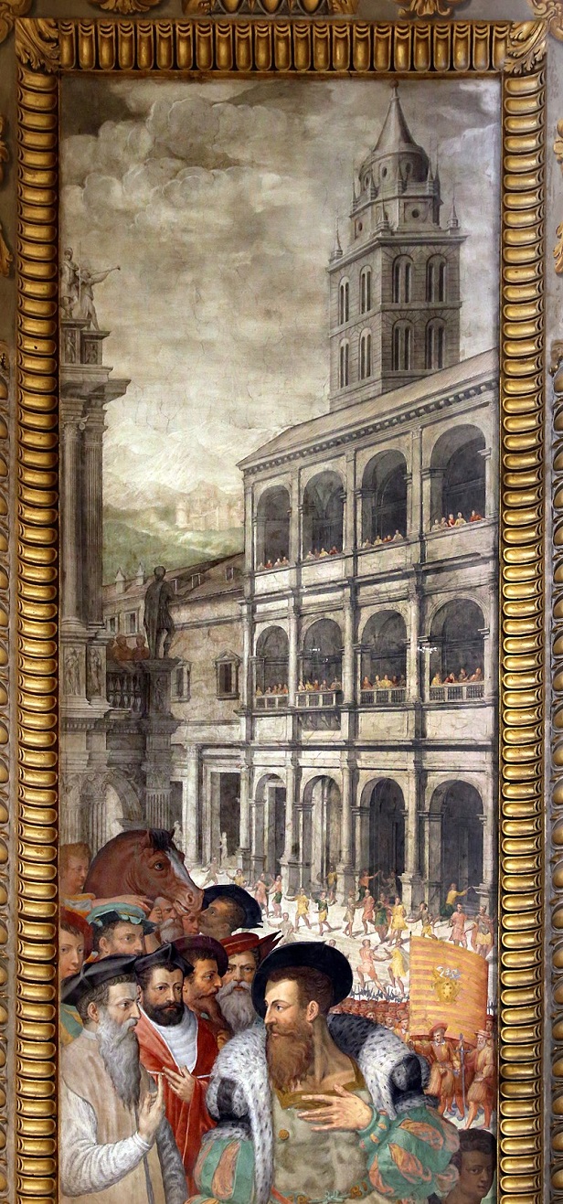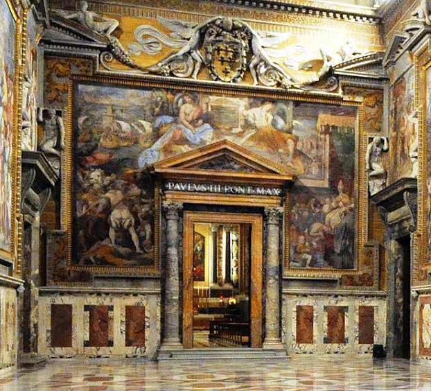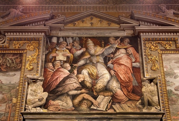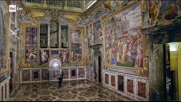 Megcsodálhatjuk Vasari és Taddeo Zuccari freskóit, amelyek az Egyház diadalát emelik ki Európa királyai és uralkodói felett, olyan jelenetekkel, amelyek I. Barbarossa Frigyest, a lepantói csatát és a pápa Avignonból való visszatérését Rómába idézik.