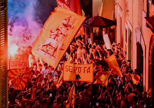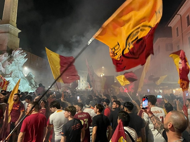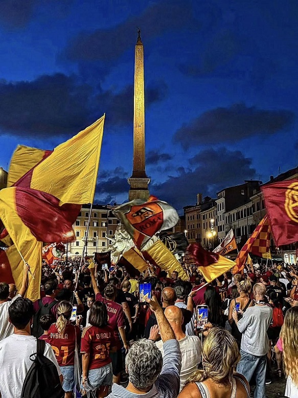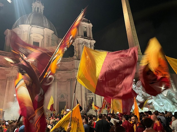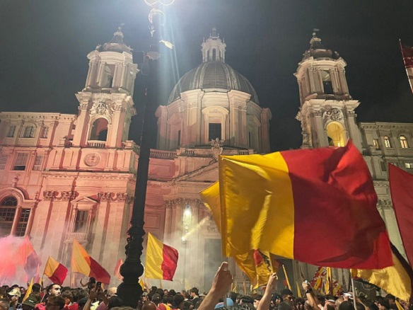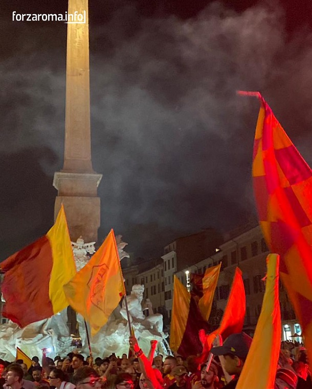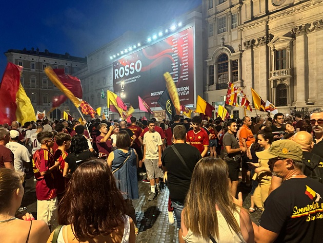 Nem voltak tűzijátékok, sem rongálások, de erős vágy volt az 1927. július 22-i alapítás megünneplésre, miközben tiszteletben tartották az Örök Várost. A kivilágított szökőkutakkal készült szelfik, a történelmi szurkolói skandálások és az éjfélkor várt hagyományos Roma himnusz között a tér a hovatartozás és a futballkultúra élő szimbólumává vált.