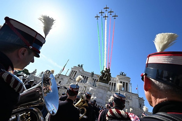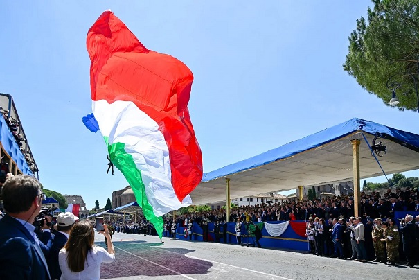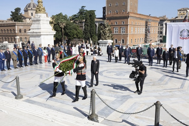 Rómában június 2-án, hétfőn a Köztársaság Napjának ünnepén Sergio Mattarella államfő tiszteletét tette az ismeretlen katona sírjánál, és elhelyezte a babérkoszorút a Haza Oltárán. Jelen volt Giorgia Meloni miniszterelnök is – akit tapssal és biztató kiáltásokkal üdvözöltek a rómaiak.