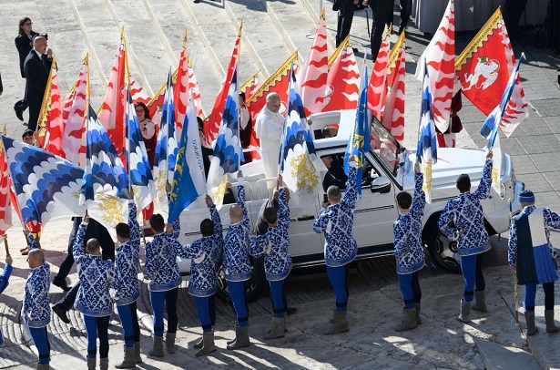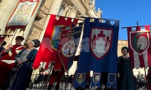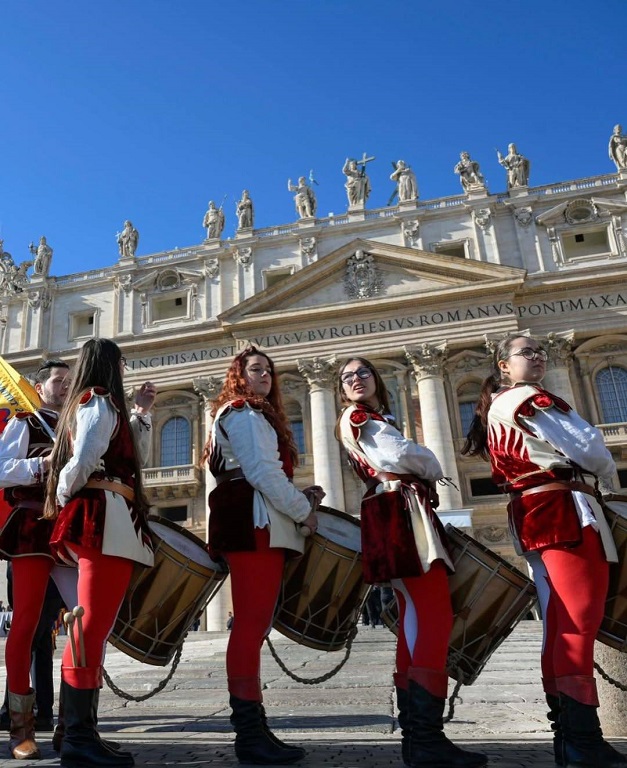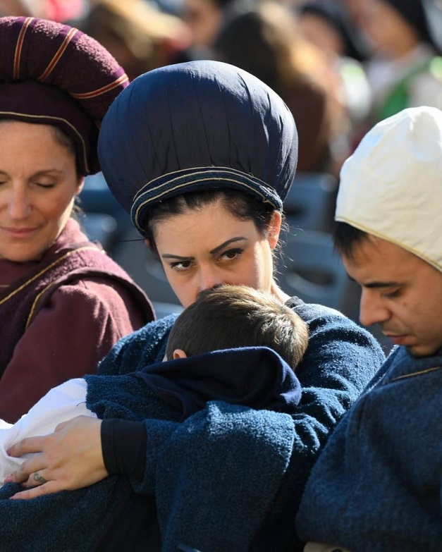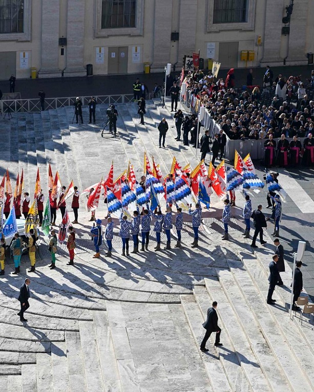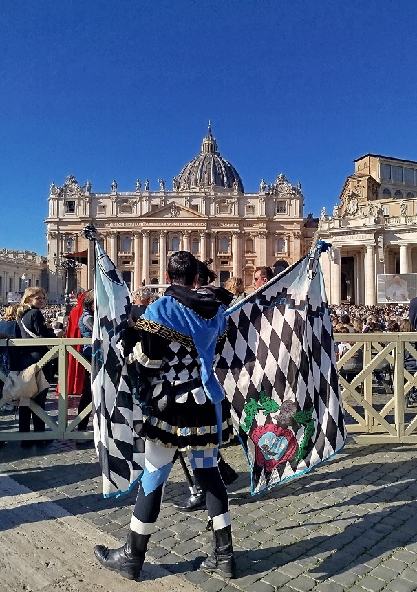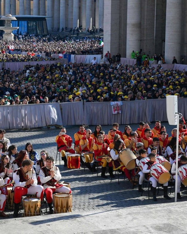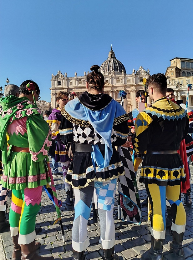 Dobok és trombiták jelezték a lovagok és hölgyek érkezését a Szent Péter térre az olasz történelmi rekonstrukciók jubileumára. Roberta Benini hangsúlyozta: „Ahogy XIV. Leó üdvözlésében említette, a hagyományok felélesztésével kapcsolatot teremtünk egy olyan ország történelme és hite között, ahol a keresztény értékek a kultúra és a művészet alapját képezik. Ez inspirációt ad a békés jövő építéséhez.”