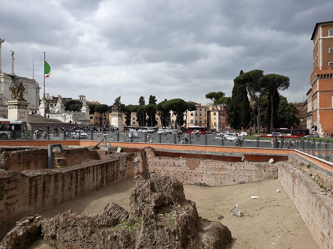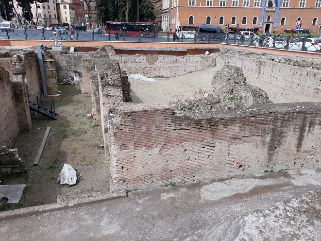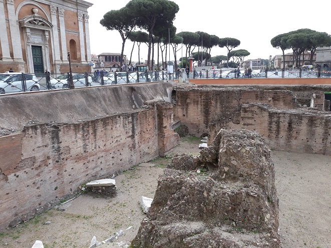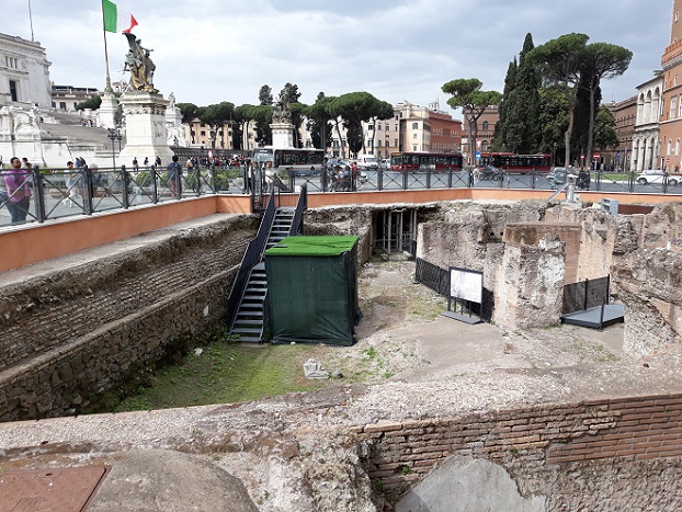 A C metróvonalon végzett munkálatok során Hadrianus császár (Kr. u. 117-138) korából származó monumentális, kétszintes középület maradványait találták meg a Piazza Madonna di Loreto-n. A három feltárt szoba közül kettő értékes padló- és faldíszekkel rendelkezik, polikróm márványból; a harmadik egy részét már a huszadik század elején azonosították a Palazzo delle Assicurazioni Generali építésekor.
