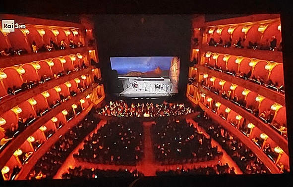 A rendkívüli műsort este nyolc óra ötven perctől sugározta a RAI3 olasz közmédia csatornája. A karmester Daniel Oren volt, a főszerepben az olasz szoprán Eleonora Buratto énekelt, Cavaradossit az amerikai tenor Jonathan Tetelman, Scarpiát az olasz bariton Luca Salsi adta elő.