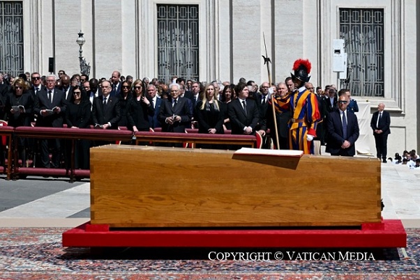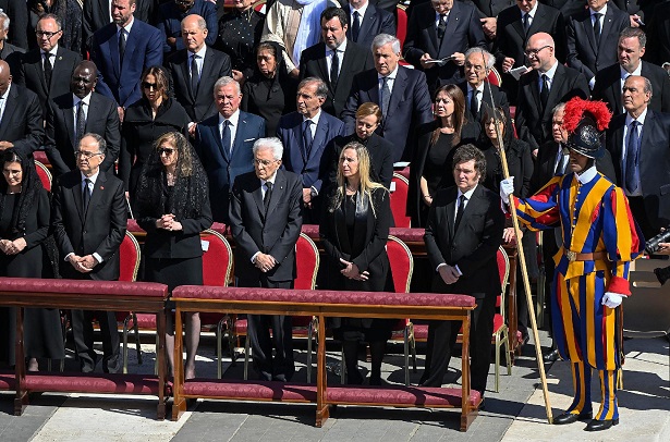 A több mint 50 világvezető és 11 uralkodó között volt Donald Trump amerikai elnök, Javier Milei argentin elnök, Giorgia Meloni olasz miniszterelnök és Ferdinand Marcos Jr. Fülöp-szigeteki elnök. A temetési misén a testvéregyházak számtalan képviselője és más vallások vezetői is részt vettek.