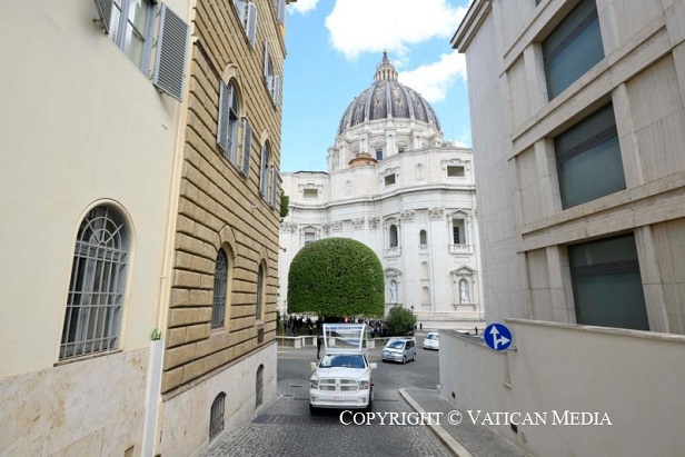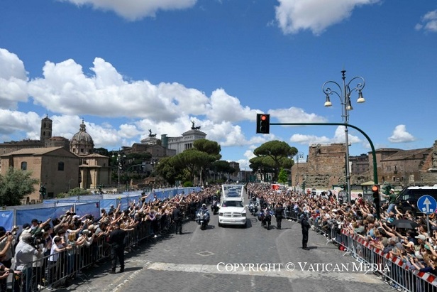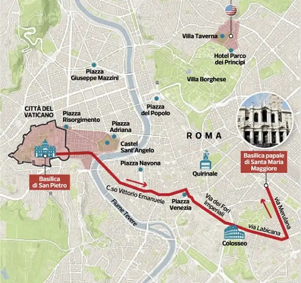 A menet a Perugino-kapun keresztül hagyta el a Vatikáni Városállamot, áthaladt a Galleria Principe Amedeo di Savoia-Aostán, és a Corso Vittorio Emanuelén halad tovább. A Venezia térre érve ráfordult a Via dei Fori Imperialira, elérkezett a Colosseumhoz, majd a Via Labicanán és a Via Merulanán haladt tovább a Santa Maria Maggiore-bazilika teréig.