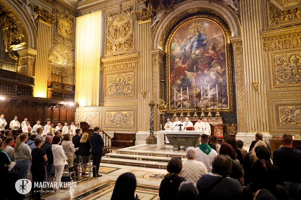 – Igen, de azért az is benne van, hogy „az órák nem mindenütt egyforma gyorsan járnak”. Szóval kétszáz év után sikerült valóban ezt a kápolnát kialakítani. De azért nagy üzenete van annak, hogy a Magyarok Nagyasszonya tiszteletére szentelték. A Nagyasszony kultusza Szent István halála után – kicsit az ő gesztusa nyomán, az ő legendájára építve – terjed el, és a barokk korban újra fölvirágzik, mert a töröktől való felszabadulást a Szűzanyának tulajdonították a kortársak. Beleértve Lipót császárt és magyar királyt is, aki őszinte szívvel hitt ebben a közbenjáró segítségben. Tehát a Magyarok Nagyasszonya kultusza és a Magyarok Nagyasszonya-kápolna egy ilyen üzenetet is hordoz. Ugyanakkor, ha végigmegyünk a Szent Péter-bazilika altemplomban, akkor látunk ott jó néhány egyéb nemzeti kápolnát is, és azoknak az oltárképe is többnyire a Szűzanyát ábrázolja – gondolok én a lengyel, a litván és más kápolnákra is. Bizony sok európai nép a katolikus hagyományai alapján a saját nemzeti védőszentjének tekinti a Szűzanyát. Ilyenkor, végigjárva ezeket, óhatatlanul úrrá lesz az emberen az az érzés, hogy egymásnak is testvérei vagyunk és a Szűzanya tisztelete összekapcsol minket.