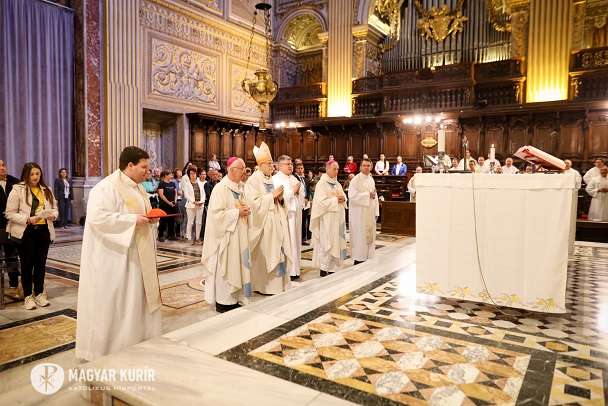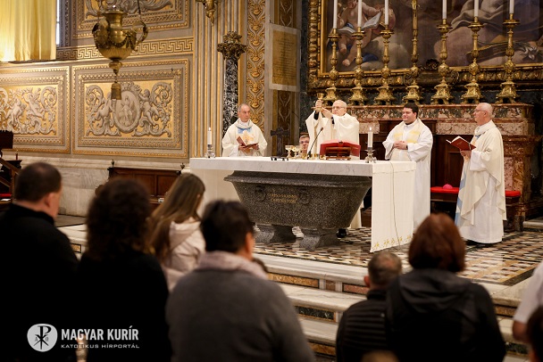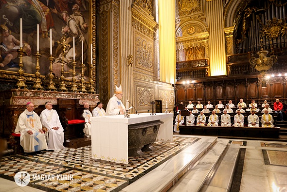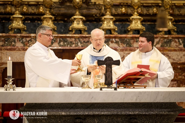 A jelen lévő magyar zarándokok és paptestvérek nagy száma miatt a mostani ünnepi liturgiára azonban nem itt, hanem a bazilika Kórus kápolnájában került sor, amelyen Udvardy György veszprémi érsek, a Magyar Katolikus Püspöki Konferencia (MKPK) alelnöke, Ternyák Csaba egri érsek, Németh Gábor, az MKPK titkára, Fehérváry Örs Jákó OSB, a római Szent Anzelm Pápai Egyetem rektora, Vízi Elemér SJ, a római Collegium Germanicum et Hungaricum spirituálisa és Törő András, a Pápai Magyar Intézet rektora koncelebrált.