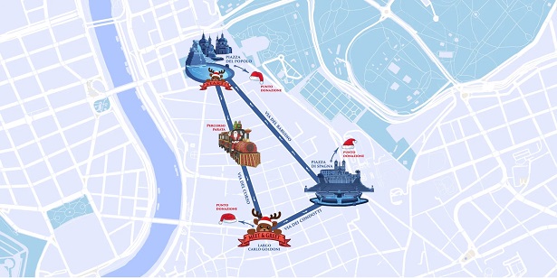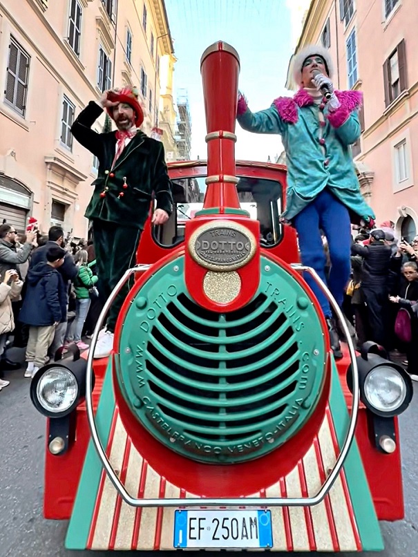 November 23-án, vasárnap, 15:00 órakor az Örök Város színekkel, zenével és érzelmekkel telt meg: a Piazza del Popolótól a Piazza di Spagna/ Spanyol lépcső teréig. Több mint 100 művész, köztük manók, akrobaták, a Mikulás, a Befana és a híres karácsonyi kisvonat élénkítette fel a főutcákat, szabadtéri színpaddá alakítva azokat.