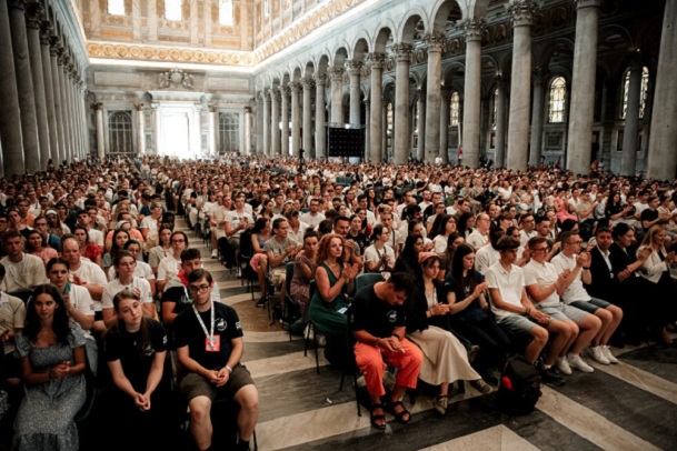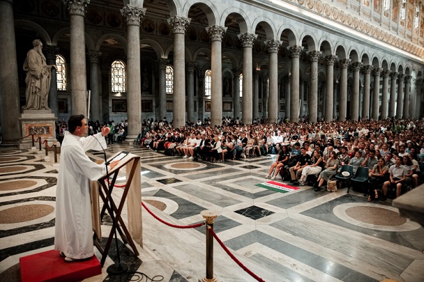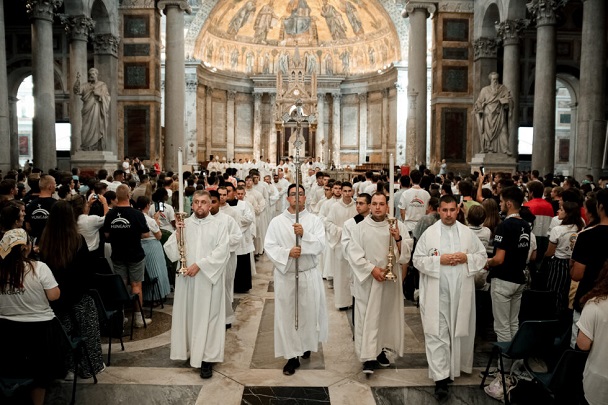 A gyulafehérvári főegyházmegyéből 160-an vesznek részt Rómában a fiatalok jubileumán Simon Imre főegyházmegyei ifjúsági főlelkész, Csont Ede plébános és Pantea Tibor OFM vezetésével. A Santa Maria Maggiore-bazilikánál csatlakozott hozzájuk Kovács Gergely érsek és András István szemináriumi rektor is.