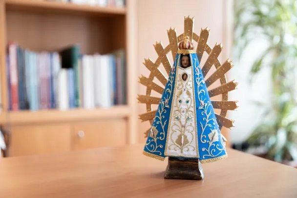 A Lujáni Szűzanyát ábrázoló kis szobor, a tipikus fehér-kék palásttal díszítve, az az ajándék volt, amelyet Ferenc pápa halála után a Szent Szív Katolikus Egyetem rektora, Elena Beccalli kapott, mikor lerótta tiszteletét Ferenc pápa felravatalozott koporsójánál a Szent Márta Házban.