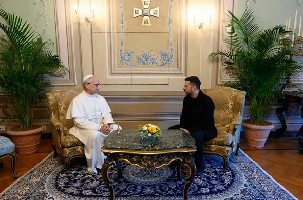 XIV. Leó a pápai nyári rezidencián, Castel Gandolfóban fogadta szerdán Volodimir Zelenszkij ukrán elnököt, aki csütörtöktől a Rómában kezdődő ukrajnai újjáépítési konferencián vesz részt. Az ukrán elnök az olasz fővárosba érkezése után elsőként a Rómától mintegy harminc kilométerre található Castel Gandolfóba ment, ahol a katolikus egyházfővel találkozott.