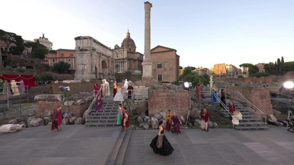 A Forum Romanum oszlopai között, a történelmi Via Sacra mentén, a Colosseum Régészeti Park szívében mutatta be a Dolce&Gabbana a 2025-ös őszi/téli AltaModa kollekcióját, amely tisztelgés az olasz barokk és az 1950-es évek filmes csillogása előtt.