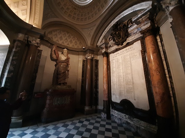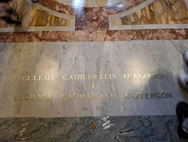 Rómában rengeteg a csodálatos látnivaló, s előfordulhat, hogy még akkor is elmulaszt az ember a maga számára érdekes dolgokat meglátni, ha célirányosan sétálgat. Így jártam a Szent Péter bazilikában a magyar emlékekkel. Természetesen rögtön megtaláltam a bazilikába belépéskor az Esztergomi bazilika méretét megmutató vésetet, ami a lábam előtt hevert.