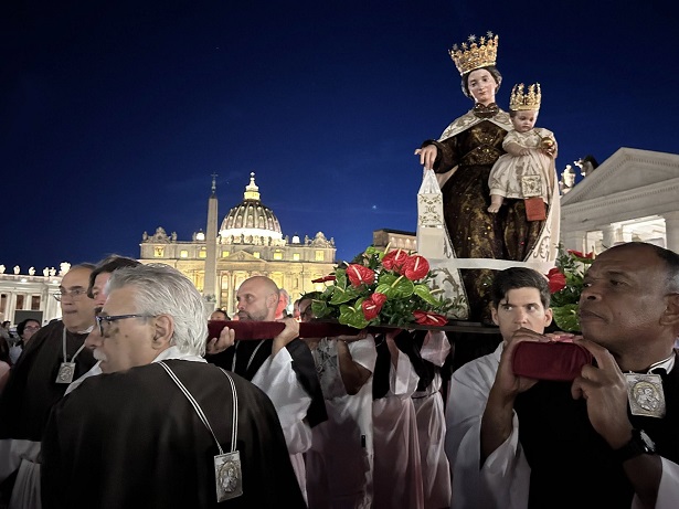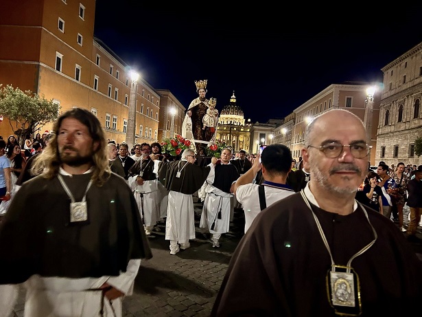 Gyönyörű imapillanat volt, melyet a karmelita atyák énekei és a Roma Capitale zenekar által előadott himnuszok kísértek.