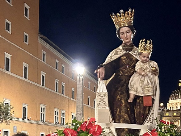 Rövid megállót tettek a Porta Sant'Anna-nál, ahol Mario Millardi atya üdvözletet és imát mondott a Szűzanyának. Vezetésével a menet ezután folytatta útját, hogy visszatérjen templomához a pompás Via della Conciliazione úton, a háttérben kivilágított Szent Péter bazilikával.