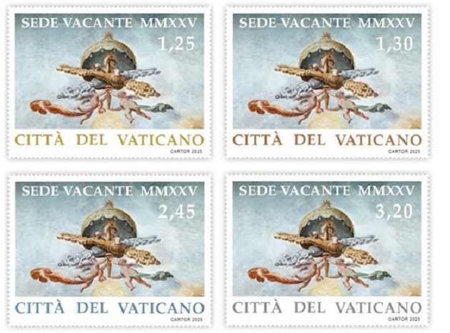 Egyébként a Sede Vacante (MXXXV.) emlékére készült bélyegsorozat, amely a Vatikánvárosból feladott postai levelekre érvényes négy névértékből áll: 1,25 € - 1,30 € - 2,45 € - 3,20 €.