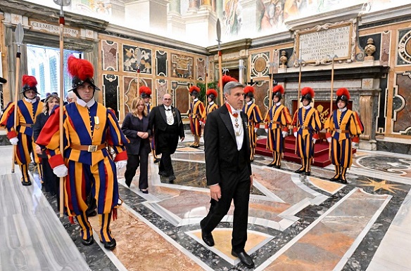 Július 2-án szerdán délelőtt fogadta audiencián XIV. Leó pápa Giorgia Meloni olasz miniszterelnököt és kíséretét. A politikus ezt követően tárgyalt Pietro Parolin bíboros államtitkárral és Paul Richard Gallagher érsekkel, a főbb témák a közös elkötelezettség a békéért Ukrajnában és a Közel-Keleten, valamint a gázai humanitárius segítség voltak.