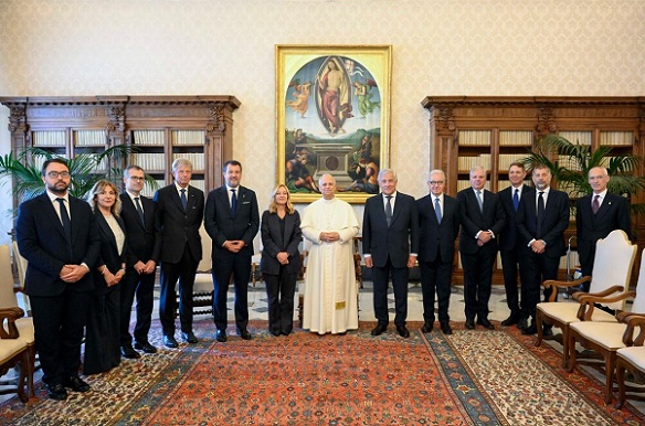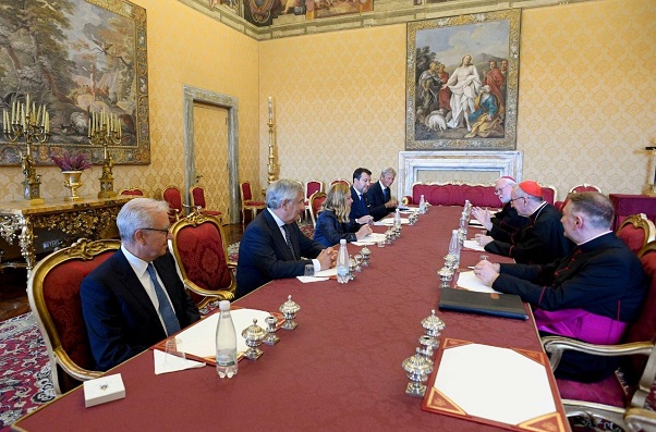 Ezúttal is Ukrajnáról egyeztetett az olasz kormányfő a pápai audiencia után a vatikáni államtitkárságon Pietro Parolin bíboros államtitkárral és Paul Richard Gallagher érsekkel, az államokkal és nemzetközi szervezetekkel való kapcsolatok titkárával. A szívélyes hangú találkozókról kiadott szentszéki közlemény arról tájékoztat, hogy a felek elégedetten állapították meg a Szentszék és Olaszország közötti jó kapcsolatokat. Kiemelték az ukrajnai és Közel-keleti békéért tett közös erőfeszítéseket és a gázai humanitárius segítséget. Ezután a kétoldalú kapcsolatokat érintő kérdésekről, az egyházat és az olasz társadalmat illető témákról cseréltek véleményt.