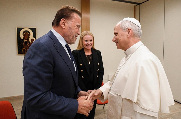 A pápa egy rögtönzött kijelentéssel a közönséghez fordult: „Az igazi hősök ti vagytok, akik együtt dolgoztok azért, hogy változást érjetek el!” Ez egy korábbi kijelentésre utalt, amelyet Arnold Schwarzenegger, Kalifornia korábbi kormányzója és az USC Schwarzenegger Intézet jelenlegi elnöke, az ünnepség egyik szónoka tett. Leó pápa beszédében azt mondta, „megtiszteltetésnek” érzi, hogy egy „akcióhős” közelében lehet utalva Schwarzenegger akciófilm szerepeire.