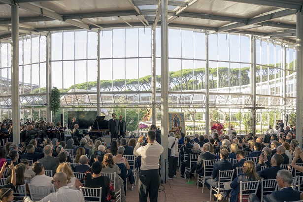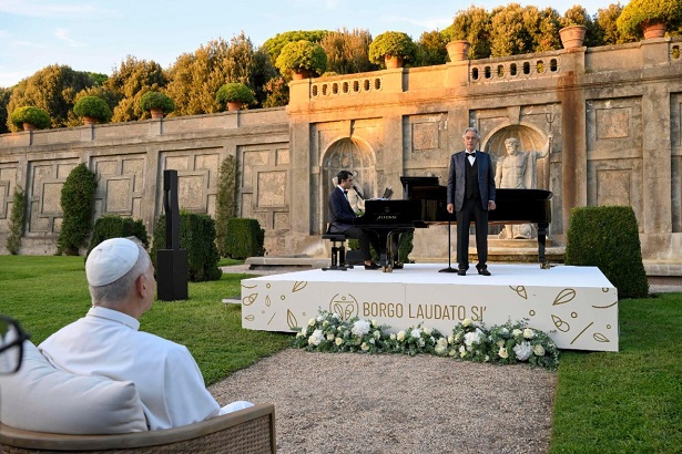 A „Laudato Si’” falu – a felsőoktatás, a befogadás, a vendégszeretet és a fenntarthatóság erényes központja – felavatásának tanújaként való részvétel örömét még nagyobbá tette az a megtiszteltetés, hogy a Szentatya, Isten embere és a legmagasabb rangú személyiség előtt énekelhettünk, mind spirituálisan, mind intellektuálisan. Amikor fiammal, Matteóval együtt elénekeltük a „Dolce Sentire”-t – egy imát, amely a teremtés szentségét és harmóniáját idézi fel –, úgy éreztem, mint régen nem, az isteni gondviselés erejét és megújult derűt az egyetemes Egyház ünneplésében, amely XIV. Leó pápában új és szilárd Pásztorra, egy jelzőfényre talált, amely ezekben a nehéz időkben vezet minket.