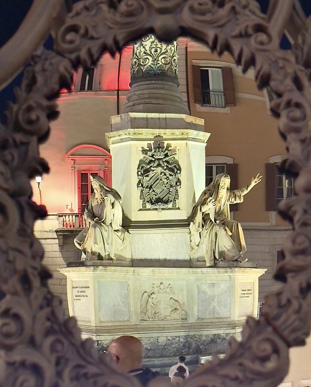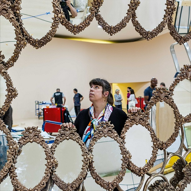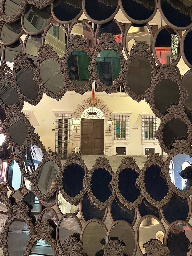 A Róma szívében található Spanyol lépcső közeli Piazza Mignanelli két dologról híres: Valentino divatházának székhelyéről és a Szeplőtelen Fogantatás oszlopáról, amelyet a pápák december 8-án ünnepelnek. A Valentino Garavani Alapítvány gyakran hoz értékes műveket erre a térre. Most Joana Vasconcelos következett „Én leszek a tükröd” installáció egy monumentális maszk, amely 255 bronz díszlécből és 510 tükörből áll.