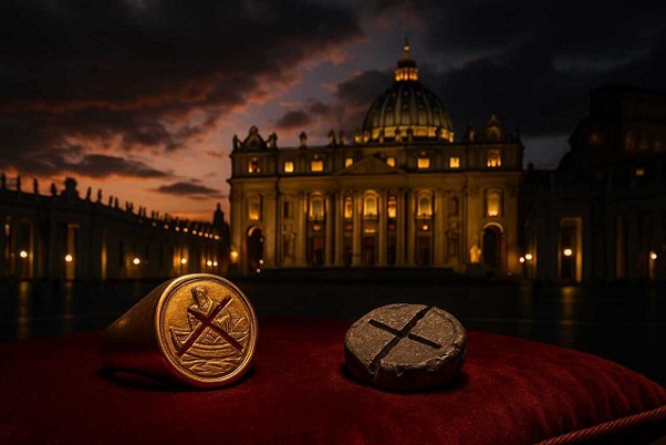 Május 6-án reggel, egy nappal a konklávé megkezdése előtt, a hagyományoknak megfelelően Ferenc pápa halászgyűrűjét és ólompecsétjét a szinódusi teremben egy kereszt vésettel érvénytelenítették, a Római Szent Egyház camerlengója, Giovan Battista Re bíboros és a Bíborosi Kollégium jelenlétében, mégpedig II. János Pál által 1996-ban életbe lépő Universi Dominici Gregis törvénye szerint. Az Universi Dominci Gregis előírja, hogy a halászgyűrűt egyszerűen érvényteleníteni kell, pontos eljárás megjelölése nélkül.