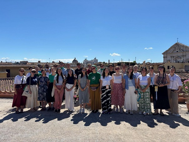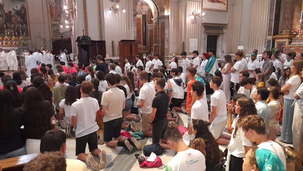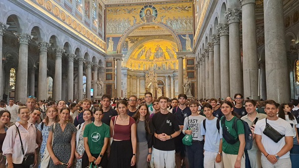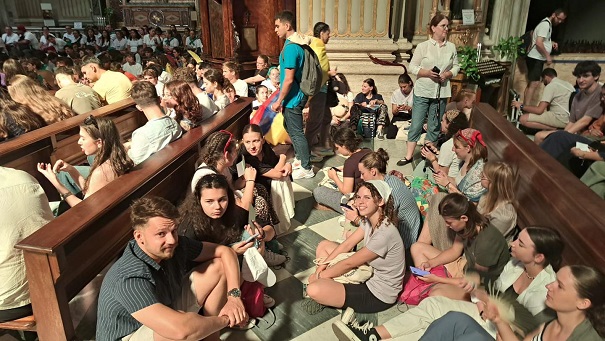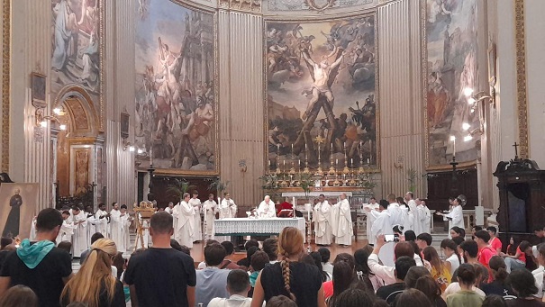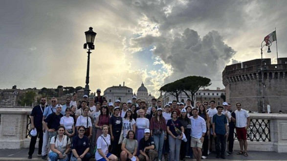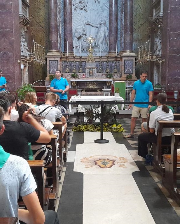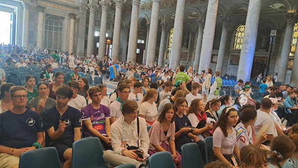 Ma a piarista tartományok és közösségek találkozóján vesz részt a magyar zarándokcsapat a Szent András-templomban Rómában. Délelőtt a tartományok videós bemutatkozása után kiscsoportokban beszélgettek a fiatalok megadott kérdések mentén. A jó hangulatú megosztásokat követő szentmisét Pedro Aguado püspök, és Carles Gil i Saguer generális atya vezetésével mutatták be.