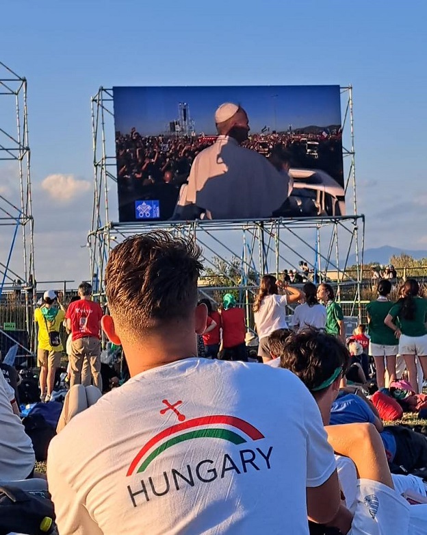 A délelőtti szabad program után útrakelt a piarista csapat a ma esti virrasztás és a holnapi szentmise helyszínére. Néhány kilométer gyaloglás után értek el Tor Vergataba, ahol közel egymillió fiatal tölti majd az éjszakát a szabad ég alatt.