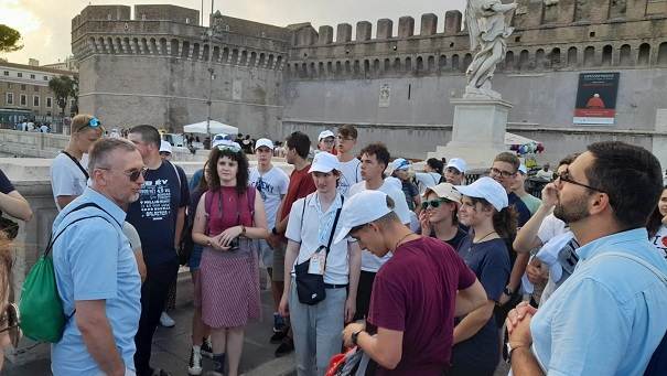 A vidám zarándokok délután bementek a városba a Szent Péter térre, elsétáltak az Angyalvár előtt. Találkoztak Carles generális atyával, Márkus Rolanddal és magyar piarista növendékekkel is.