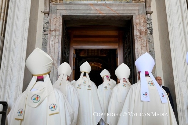 Ezek után az összes püspök Krisztus keresztjét követve lépett át a szent kapun, majd szentmise ünneplésére került sor a Szent Péter-bazilika Cathedra Petri oltáránál. A liturgiát szintén Ouellet bíboros vezette.