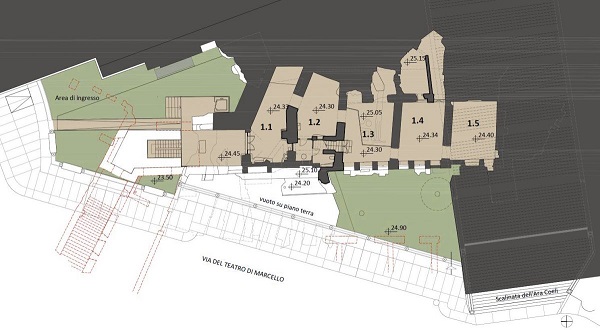 Az Insula Ara Coeli, a Taberna delle Tre Pile és a Capitoliumon található grották konzervatív restaurálása és fejlesztése összesen 3500 m2. A Projekt célja három fontos és lenyűgöző régészeti lelőhely helyreállítása és fejlesztése a Capitoliumon. A Campidoglio két monumentális lépcsője közelében található Ara Coeli insulát az 1930-as években tárták fel és restaurálták, a domb lejtőin végrehajtott nagyszabású bontási programot követően. A javasolt beavatkozások egyrészt a műemlék védelmét célozzák a szerkezetek helyreállításán és biztonságán keresztül, másrészt a műemlék hozzáférhetőségének és használhatóságának javítását, amely jelenleg rendkívül korlátozott.