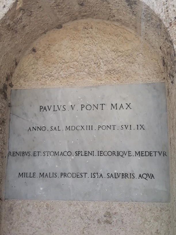 A múlt századokban rómaiak sétálgattak itt, 1608-ban az Apostoli Kamara még egy forrásőrt is kinevezett: az első, a kíváncsiak kedvéért, Pietro Paolo Quarteri volt. Az 1613-as emléktábla szerint a forrás többek között "a vesék és a gyomor, a lép, a máj és ezernyi betegség gyógyítására" szolgált.