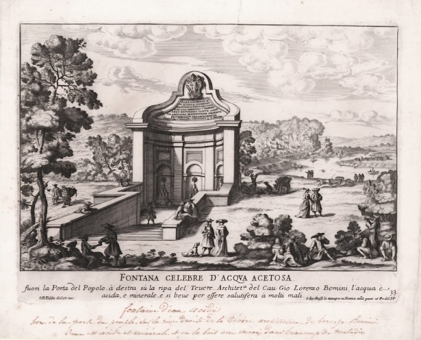A forrás története az évek során folytatódott, és híres gyógyító tulajdonságainak köszönhetően virágzó kereskedelem folyt a vízzel, amelyet kis hordókban szállítottak és árultak az egész városban. A romantikusok forrásaként is ismert, mert Lajos király mellett J.W. Goethe római utazásai során is gyakran elragadtatva állt meg a forrásnál. Goethe 1787 nyarán ezt írta: „Szörnyű a hőség. Hajnalban felkelek, és elsétálok az Acqua Acetosához, egy ásványvízforráshoz, amely körülbelül fél óra sétára van a Porta del Popolótól, ahol lakom. Ott iszom a vizet, amely gyenge „Schwalbacher” ízű, de nagyon hatásos. (...) A táj változatossága, ködös átlátszósága és színei örömmel töltenek el.” (A Schwalbacher egy ásványvízforrás Schwalbach am Taunusban, Frankfurt am Main közelében, Németországban.)