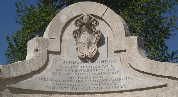 Az Acqua Acetosa név egy savanyúvíz-forrásról származik, amelyet a rómaiak nagyon szerettek. Az első kutat 1613-ban V. Pál pápa hozta létre, majd 1650-ben X. Ince restaurálta, aztán VII. Sándor Chigi pápa 1661-ben kibővítette, s azóta a Ghigi család címerét viseli.