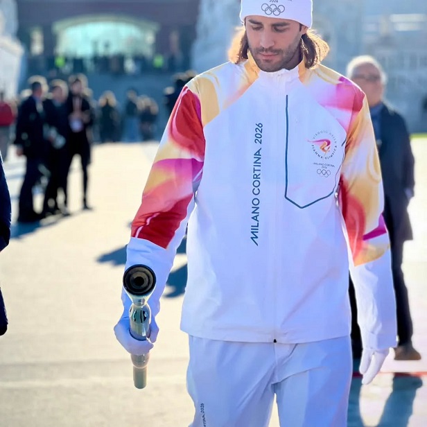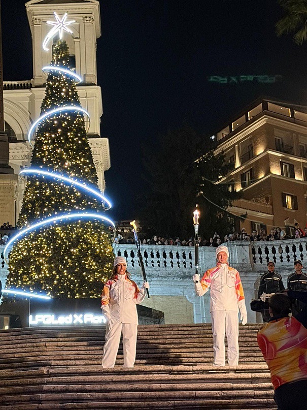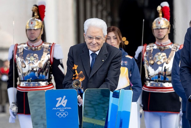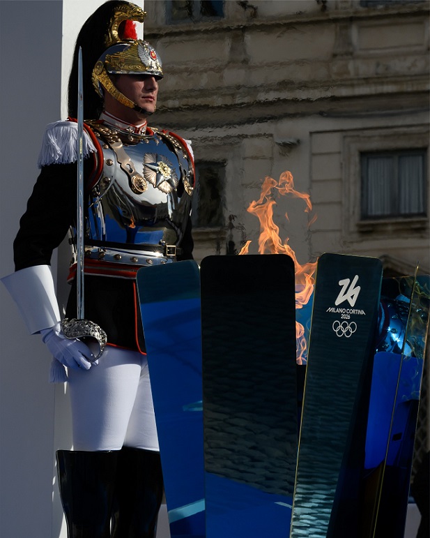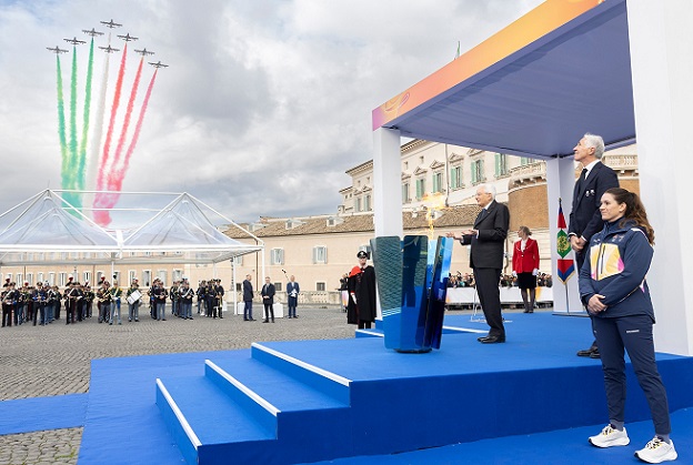 A lángot Giovanni Malago, a Milano-Cortina alapítvány elnöke átnyújtotta Sergio Mattarella államfőnek, aki a Quirinale palota előtti téren meggyújtotta a fáklyát, és azzal az ünnepi üstöt. A fáklyát elsőként Gregorio Paltrinieri olimpiai, világ- és Európa-bajnok úszó vette kézbe.