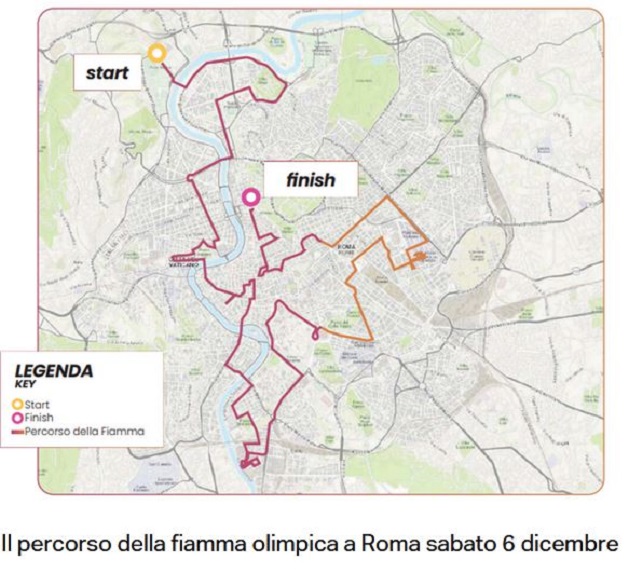 Az olimpiai lángváltó tehát szombaton, a történelmi Stadio dei Marmiból indult, innen pedig olyan híres helyeket érint az országban, mint Toszkána, Szardínia, Szicília vagy Pompei, mielőtt a karácsonyt Nápolyban, a szilvesztert pedig Bariban tölti. Az olimpiai láng elhalad többek között Rómában a Colosseumnál és a Trevi-kútnál, a velencei Canal Grandénél és az Alpok egyik legmagasabb csúcsánál, a 4554 méteres Punta Gnifettinél is.