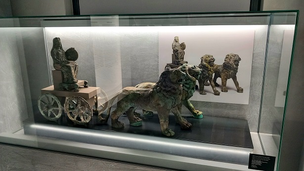 A kultusz eredetét és átalakulását követik nyomon a fríg kultusztól a Kr. e. 204-es római hivatalos elfogadásáig, amikor – a Szibilla Könyvek válasza szerint – ikonikus képe Pessinusból a Palatinus-dombra került, és a város üdvösségének és újjászületésének szimbólumává vált. A második pun háború döntő csatájáról (Kr. e. 202) híres Zama fontos numidiai, majd római központ is volt. A kiállítás középpontjában pedig az afrikai szentély és a római Palatinus szentélye közötti szimbolikus és vallási kapcsolat áll, amely a birodalomban a Magna Mater kultuszának szíve.