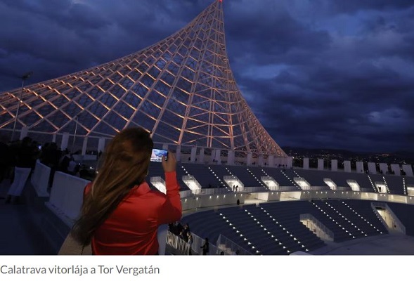 Santiago Calatrava sztárépítész által Rómában a 2009-es úszó-világbajnokság megrendezésére tervezett, impozáns, 75 méter magas acél- és betonszerkezetet egy multifunkcionális sportkomplexumhoz szánták.
