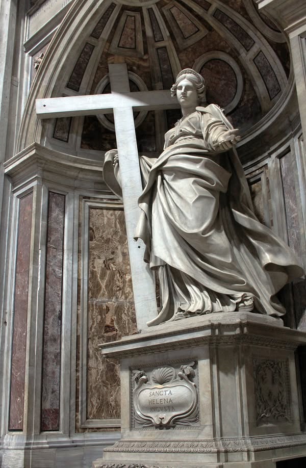 Visszatérve a szobrokhoz, az 5 méter magas carrarai márványszobrok mindegyikét hangsúlyos színházi pózok jellemzik, témái pedig az ott őrzött ereklyék ünneplését jelentik. VIII. Orbán pápa jelenlétében 1640. március 2-án leplezték le Szent Ilona császárné szobrát, Bolgi Andrea alkotását.