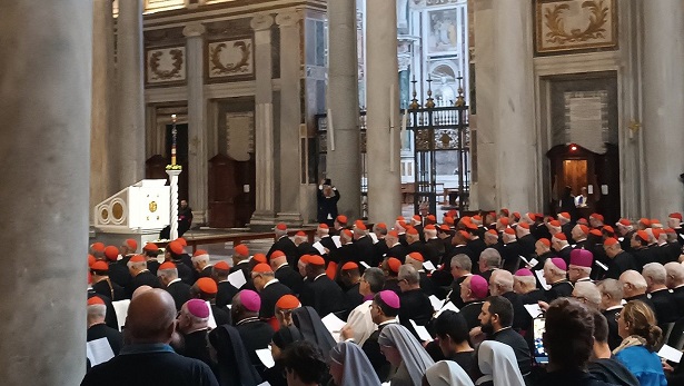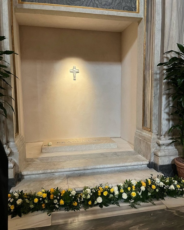 Ezen a napon délutánra terveztük a látogatásunkat a Santa Maria Maggiore bazilikába. Odaérve láttuk a hatalmas sort Ferenc pápa sírjához, úgyhogy elkönyveltük, hogy most egy pár óra sorbaállás következik. Ez 15.45 körül volt. Ekkor mondta az egyik csoportvezető társam, hogy látja a jubileum applikációjában, hogy 16.00 órára még lehet regisztrálni a szent kapun való átmenetelhez. Pár percen belül sikerült is a csoportos regisztráció. Kiálltunk a sorból és legalább három ellenőrző ponton engedtek át minket a szervezők és a rendőrök örömmel, gratulálva, mosolyogva és viccelődve. Délután négykor már a bazilikában voltunk. Hallottam, hogy éppen imádság folyik, ekkor jutott eszembe, hogy előző nap olvastam a hírekben, hogy a bíborosok éppen vasárnap délután négyre jöttek közösen a bazilikába, hogy Ferenc pápa sírjánál imádkozzanak. Megdöbbentő volt ez a „véletlen” egybeesés is. Ferenc pápa sírjánál sem tudtunk sok időt eltölteni a tömeg miatt, ahogy viszont jöttünk el a sír mellett, a szervezők az imádkozó bíborosok mellett terelték el a tömeget. Ott pillantottam meg kb. két méterre tőlünk Angel Fernández Artime bíborost, aki pár hónappal ezelőtt még szalézi rendfőnökünk volt és maga Ferenc pápa nevezte ki bíborossá. Végtelen öröm és kegyelmi pillanat volt ott lenni és röviden imádkozni.