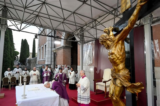 2. A pápa nyilvános szentmisén nem a hagyományos püspöki pásztorbotot használja, hanem a kereszt alakban végzödöt. Ezt látjuk a 2. fotón.