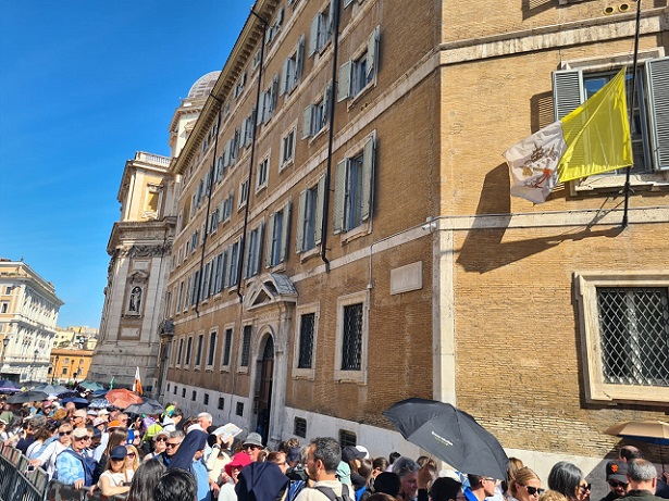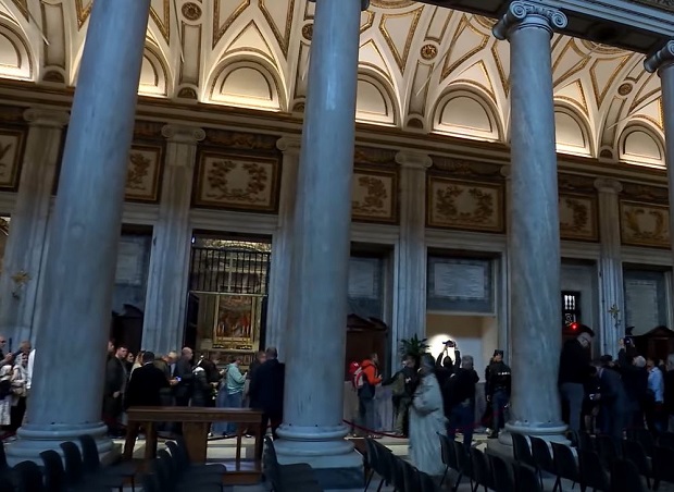 Tegnap, április 26-án szombaton délben érkezett Ferenc pápa koporsója a Szent Péter bazilikából a Santa Maria Maggiore bazilikába, melyet a templom előterében Rolandas Makrickas bíboros, a bazilika koadjutor főpapja és a bazilika vezetését végző domonkos kanonokok káptalanja fogadott.